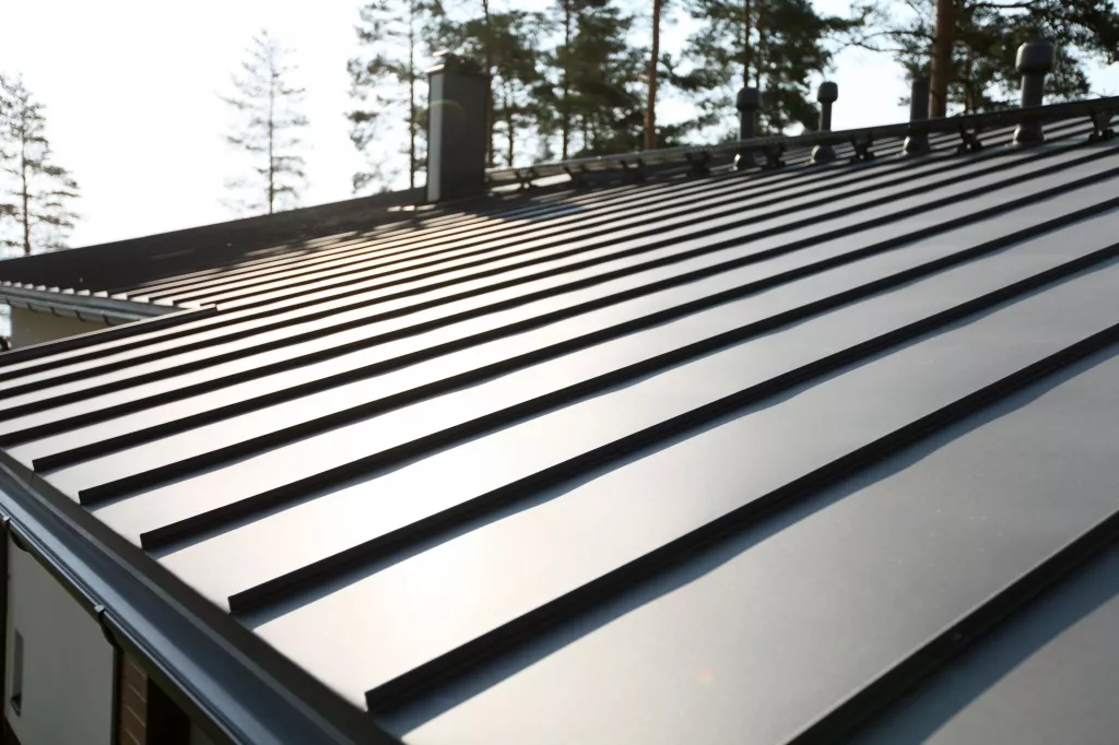 Далее устанавливают стартовую фигуру и фиксируют ее кляммерами. Рядовые панели укладывают рядом, так чтобы паз фальцевого соединения совпадал с выступом замка предыдущей фигуры. После укладки картин обжимают фальцевые соединения кровельными рамками или электрическими машинками для закатывания швов, формируют и герметизируют места примыкания к дымоходу, монтируют добротные элементы и водосточную систему.